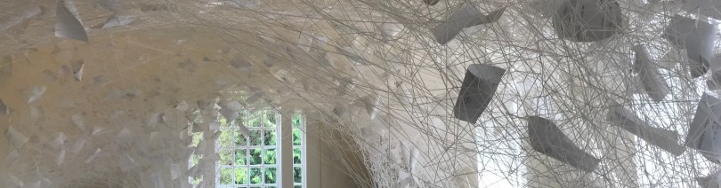The installation and performance artist Chiharu Shiota created a work of art in the 18th century former chapel in the Yorkshire Sculpture Park. The picture at the heading of this blog comes from a visit I made to the installation in 2018. In the void of the building these seemingly infinite connections and crossings are peppered with stray sheets taken from hymn books. The work appears to introduce thin memories into the space, evoking the notes and words of well known lyrics such as ‘We plough the fields and scatter’. A spell of time-travel woven by this careful crafting of line, word and melody. The faithful witness of generations in this rural corner of Yorkshire appeared caught; fragile yet stilled. It as as though the winds of time have been frozen for a moment and the memories fixed and held.