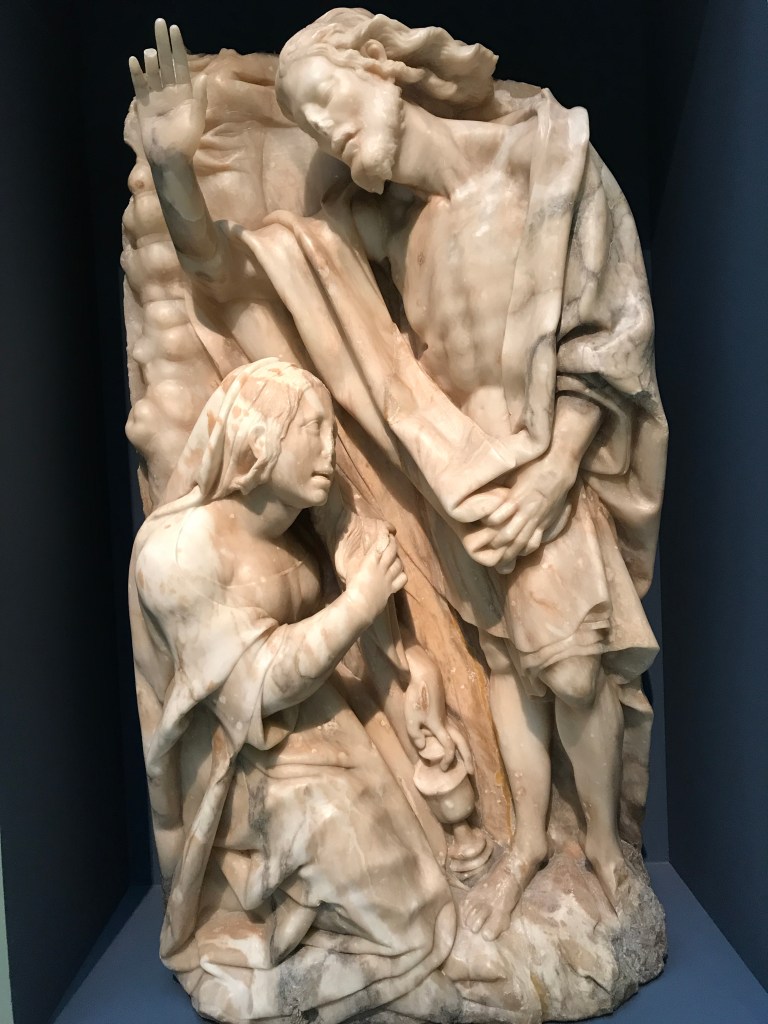 The exhibition is in its final week and appears to have been very popular. The alabaster reliefs, elaborate reliquaries, and fine stained glass portray the channeling of wealth in honour of a saint whose significance across the continent lasted until the 16th century. At the same time, as Chaucer’s fiction depicts, the motives of pilgrims varied considerable. The corruption of spiritual practices through avarice is evident in The Canterbury Tales. Nevertheless, the portrayal of corruption demonstrates a common agreement about the the kind of life clergy should lead and the way in which the Church should carry out its vocation. The ‘poor parson’ is a priest unswayed by wealth or the social standing of the parishioners. We are told that ‘first he wrought, and afterwards he taught’.