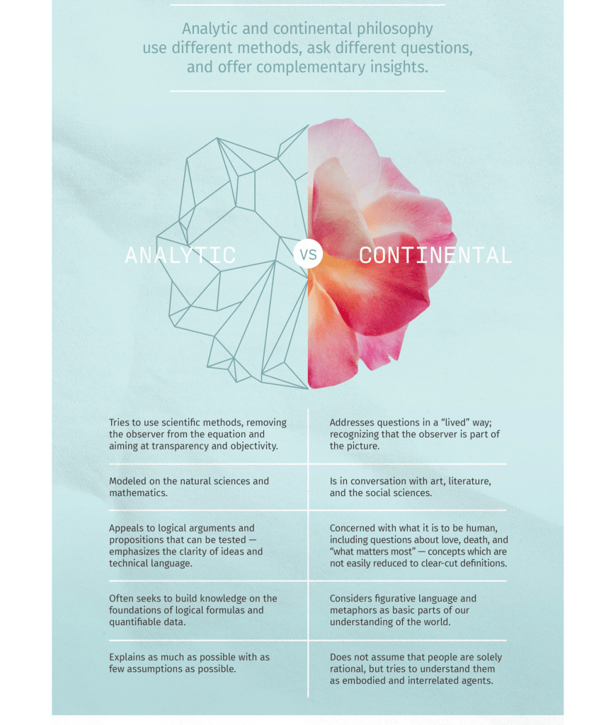 Given the scope and nature of theology, the recognition of inter-connection and open enquiry offered by continental philosophy has considerable potential to inform methods of theological research. Theology has no illusions about how little we know, and the enormity of potential knowledge that surrounds us. Understanding how to act in this context of partial information, in which lived experience is critical but often unamenable to study, is something a theology informed by continental philosophy could make more visible and help us live creatively within all that remains unknown.