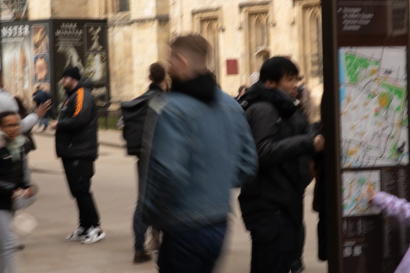 It is an incidental fact of the modern world that most of us are captured, unwittingly, in other people’s photos. Whereas once upon a time we might have dodged around the line-of-fire between camera and subject, there are now so many pictures being taken that it is almost impossible not to intrude. Outside York Minster cameras and phones are in all directions, with an almost continuous stream of snaps being taken from dawn until well after dusk. I’ve long given up trying to walk around.